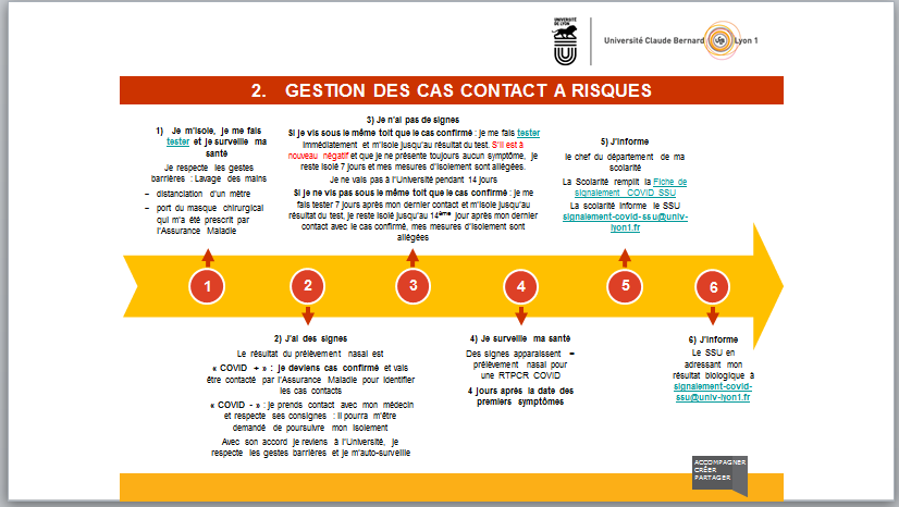 Cette page détaille toutes les démarches à effectuer dans le cadre de suspicion, ou contamination avérée au Covid19 quand on est étudiante ou étudiant à l'Université Claude Bernard Lyon 1.